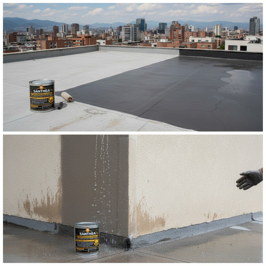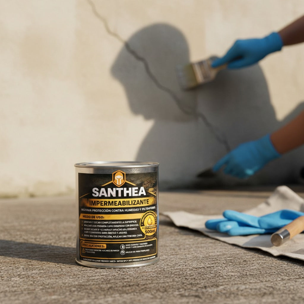 Santhea no solo cubre la humedad, crea una capa protectora impermeable de alta resistencia que bloquea el paso del agua y previene futuras filtraciones, incluso en temporada de lluvias fuertes.